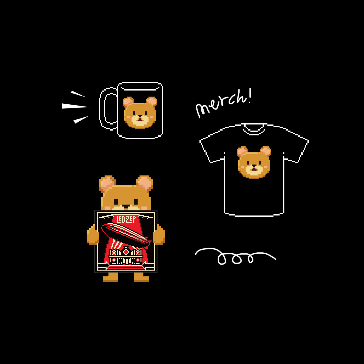 Buy merchandise from mugs, tees to totebags with Bear logo on it in Teespring. You could go to Society6 to get prints and stickers of the pixel art album!